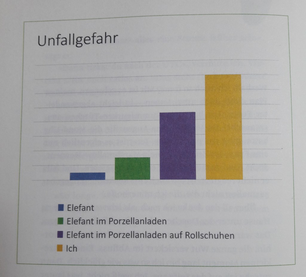 „Meine Gedanken überschlagen sich. Auch mein Herz legt deutlich an Tempo zu. Garantiert komme ich auf mehr als 100 Schläge pro Minute.“ (S.56)