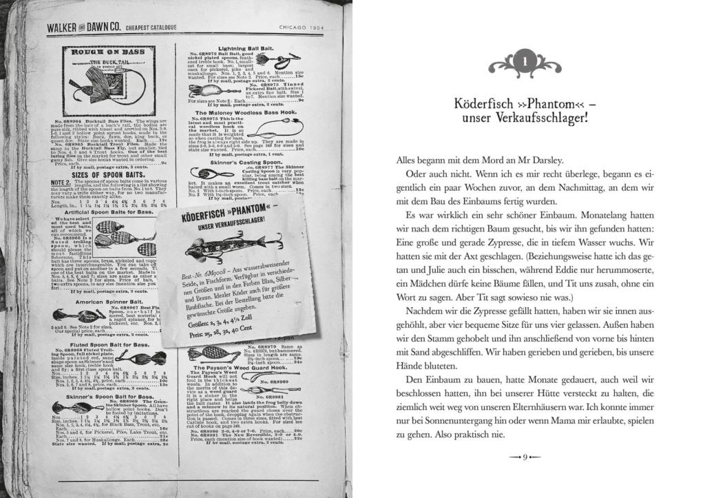 „Es kamen Wasser und Schlamm heraus. Und drei Münzen. Drei Dollarmünzen, die in dem Sonnenfleck auf dem Boden des Einbaums blitzten und glänzten.“ (S.15)